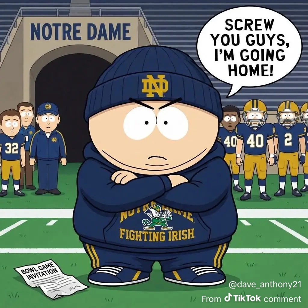 Iowa state and k state are being fined $500k for not going to bowl game because of coaching change. ND should be fined 1 million for being cry baby bitches.