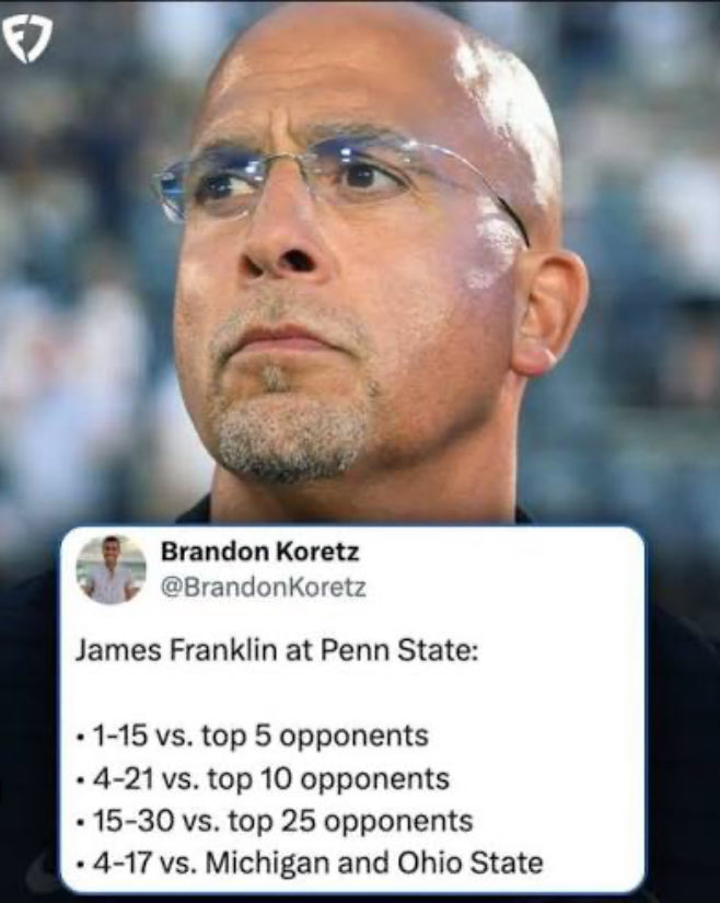 This was Franklin’s 11th season at Penn State so he can’t say they pulled the trigger too easily. His record against good teams was rather bad.