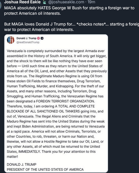 So, we’re going to war over drugs or….oh, oil….again. Didn’t we got to war with the last GOP President as well?
